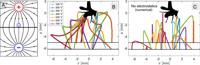 구체적으로 설명하자면, 이 원리는 다음과 같다. 초파리가 공중을 윙윙거리며 날아다닐 때, 그 몸이 공기 분자와 마찰하면서 수백 볼트의 전하를 생성한다. 초파리는 반대 전하를 가지고 있는데, 이 전하가 초파리의 전기장에 끌린다. 초파리가 목표물에 접근하면 정전기적 인력이 정확도를 높이고, 이 작은 포식자가 날아다니는 숙주에 안정적으로 달라붙도록 도와준다.