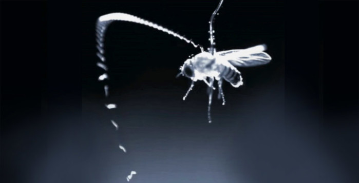정전기력을 이용해 숙주인 과일파리에게 몸을 던지는 선충