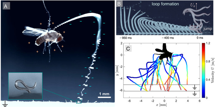 도대체 이 작은 선충은 어떻게 공중의 민첩한 숙주 곤충을 안정적으로 공격할 수 있을까? 란과 그의 연구팀은 고속 카메라와 전압원에 연결된 죽은 초파리를 먹이로 사용한 실험에서 스테이너네마 카르포캅사가 곡예 도약에서 정전기적 인력을 이용한다는 사실을 발견했다.