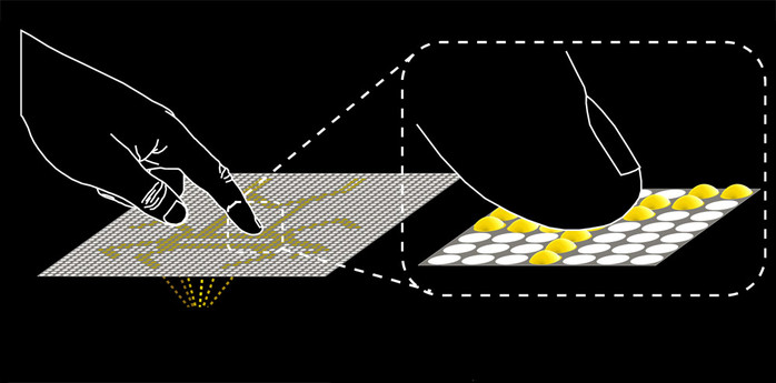 미국 연구진이 정보를 시각적으로 표현하고 동시에 촉각적으로 표현하는 새로운 유형의 디스플레이를 개발했다. 활성화된 픽셀은 작은 "돌기"처럼 튀어나와 있다. 이는 탄성 디스플레이 표면 아래에 있는 작은 공기 챔버 덕분에 가능하다. 레이저 광선을 비추면 이 "픽셀 챔버" 안의 가스가 팽창하고 디스플레이 표면이 눈에 띄게 바깥쪽으로 부풀어 오른다. 가장 큰 특징은 촉각 픽셀이 일반 이미지 픽셀과 거의 같은 속도로 반응한다는 것이다.