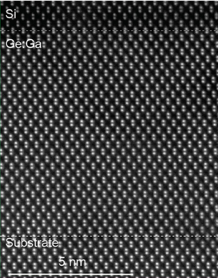 | ▲ 이전에는 갈륨 원자를 도핑하여 일반적인 게르마늄 격자를 파괴했다. 그러나 이 전자 현미경 사진에서 볼 수 있듯이 새로운 방법에서는 그렇지 않다. © Salva Salmani-Rezaie |