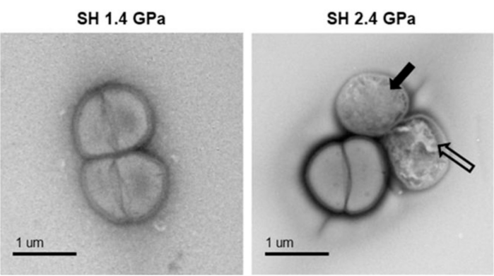 - 1.4GPa의 충격 압력 후에도 세포는 세포벽 손상 없이 박테리아의 전형적인 형태 유지