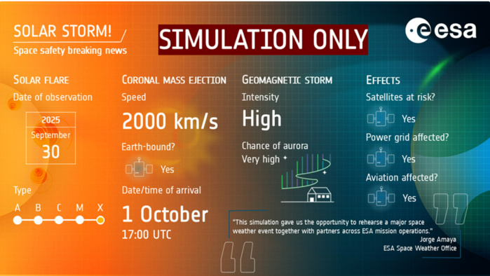 "이러한 사건의 영향을 시뮬레이션하는 것은 팬데믹의 결과를 예측하는 것만큼이나 어렵다"고 ESA의 우주 기상 모델링 코디네이터인 호르헤 아마야(Jorge Amaya)는 설명했다. "우리는 사건이 발생한 후에야 사회에 미치는 진정한 영향을 느낄 수 있겠지만, 비상 상황 발생 시 즉각 대응할 수 있는 준비를 하고 계획을 세워야 한다. 이 훈련은 이처럼 중대한 사건에 대처할 수 있는 첫 번째 기회였다."