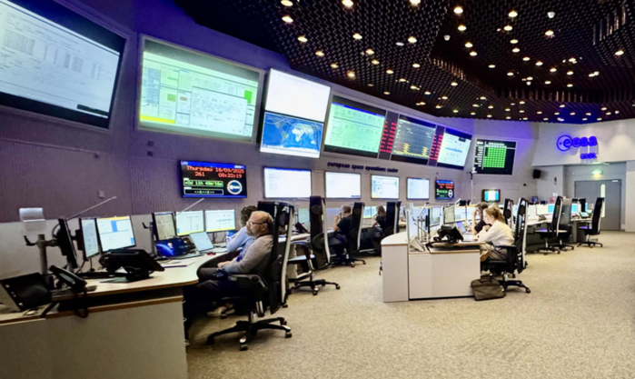 ▲ 유럽 우주 운영 센터(ESOC)의 센티넬-1D 지상팀. 그들은 방금 초대형 태양 폭풍 시뮬레이션을 완료했다. © ESA |