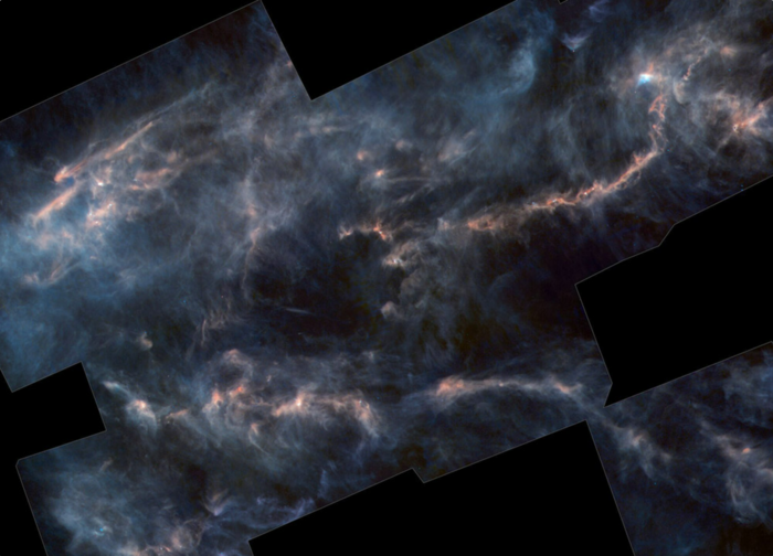 | ▲ 여기 보이는 황소자리 성운처럼 약 450광년 떨어진 곳에 위치한 차가운 분자 구름은 별의 탄생지다. 또한 생명체의 분자 구성 요소를 이루는 많은 전구체들을 포함하고 있다. © ESA/Herschel/NASA/JPL-Caltech, R. Hurt, CC-by-sa 3.0 IGO |